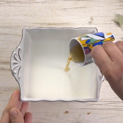 Prepariamo la bagna per il tiramisù aggiungendo al latte mezzo bicchierino di liquore all'amaretto quindi assembliamo il dolce, inzuppiamo i Savoiardi nel latte e disponiamoli nella pirofila ricoprendo completamente il fondo poi aggiungiamo la crema e le pesche a pezzetti procediamo con un altro strato di savoiardi inzuppati, terminiamo con la crema e le pesche. |